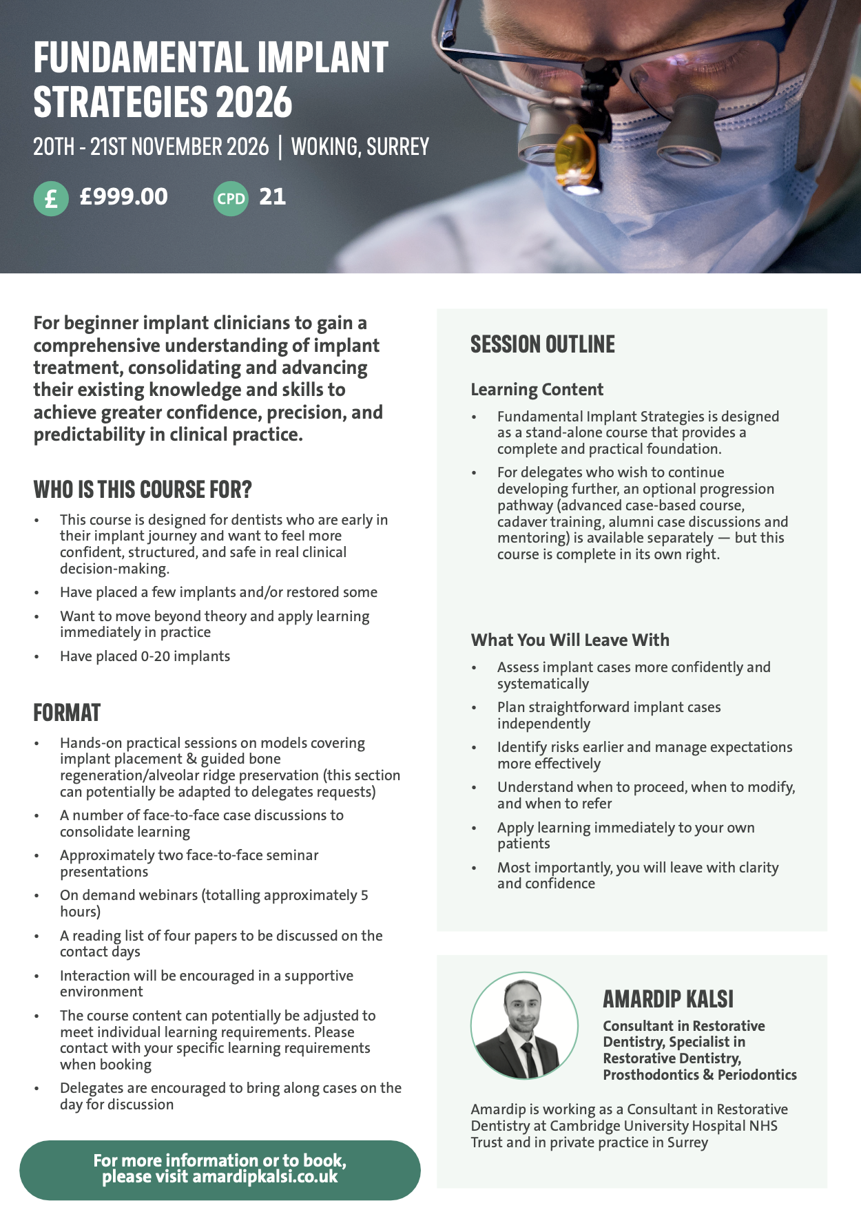 No theory-heavy teaching. Every concept is directly applicable to cases you are already seeing — or about to see — in practice.
